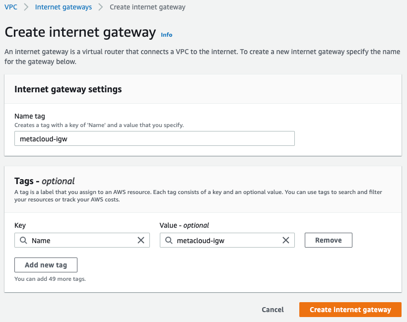 - Public Subnet을 생성하기 위해 Internet Gateway (IGW)를 생성합니다.