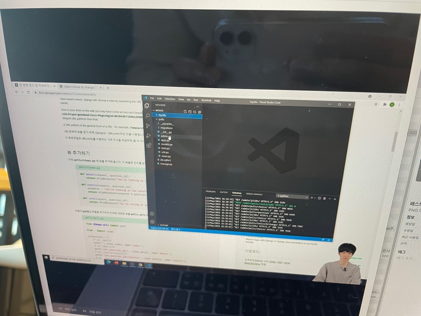 지난번까지 Django의 Admin 페이지를 구성하고 Admin 페이지에 설문조사 앱을 구성하여 웹을 통해 작업할 수 있도록 실습을 진행하였습니다. 이번 포스팅은 Django의 View 기능에 대한 내용을 정리하였습니다. 패스트캠퍼스 14일차 수강 인증샷 입니다.