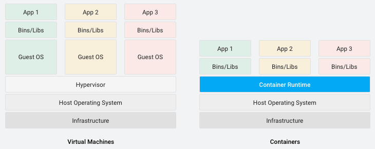 - 한마디로 소프트웨어를 컨테이너라는 표준화된 유닛으로 패키징하는 기술을 도커(Docker)라고 하는데 여기서 컨테이너에는 라이브러리, 시스템 도구, 코드, 런타임 등 소프트웨어를 실행하는데 필요한 모든 것이 포함되어 있습니다.